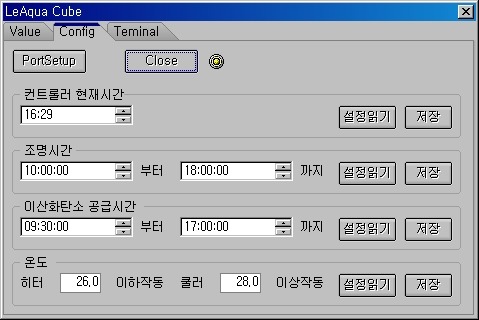 18w FPL등 두개, 쿨링팬 , 조명시간, 이산화탄소시간, 히터 ,쿨링팬, PH모니터링 등을 컨트롤 할 수 있는 컨트롤러도 같이 넣었습니다