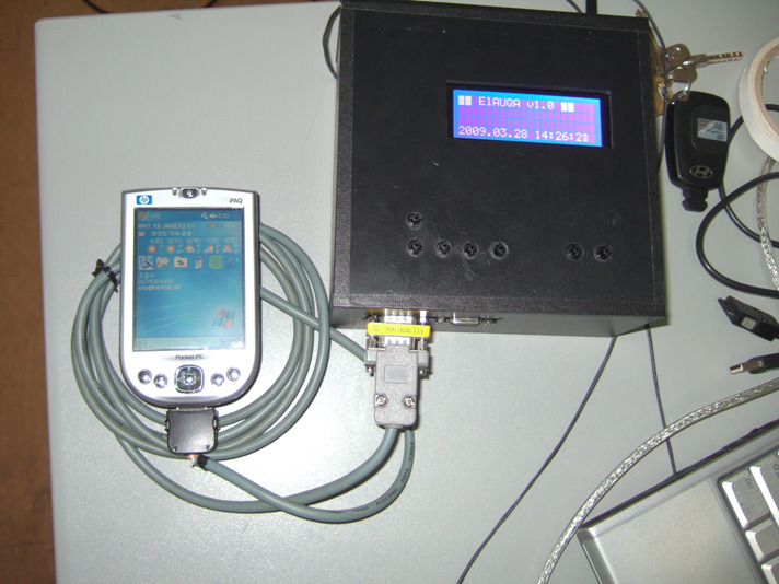 데이터 로깅과 세팅등을 위해서 PC 또는 PDA와 RS232로 통신을 하게 됩니다. PDA와 연결한 모습 이며 PDA용 케이블 배선은 PDA 핀배열 을 참고 하면 됩니다.