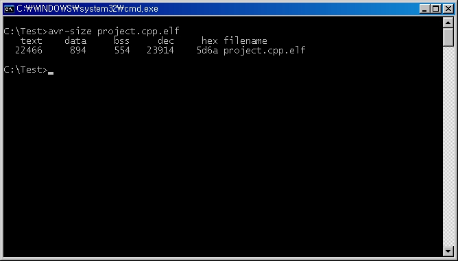 avr-size.exe 과 컴파일시 생성되는 elf 파일을 이용하면 플래쉬메모리와 SRAM의 사용용량을 확인할수 있습니다.